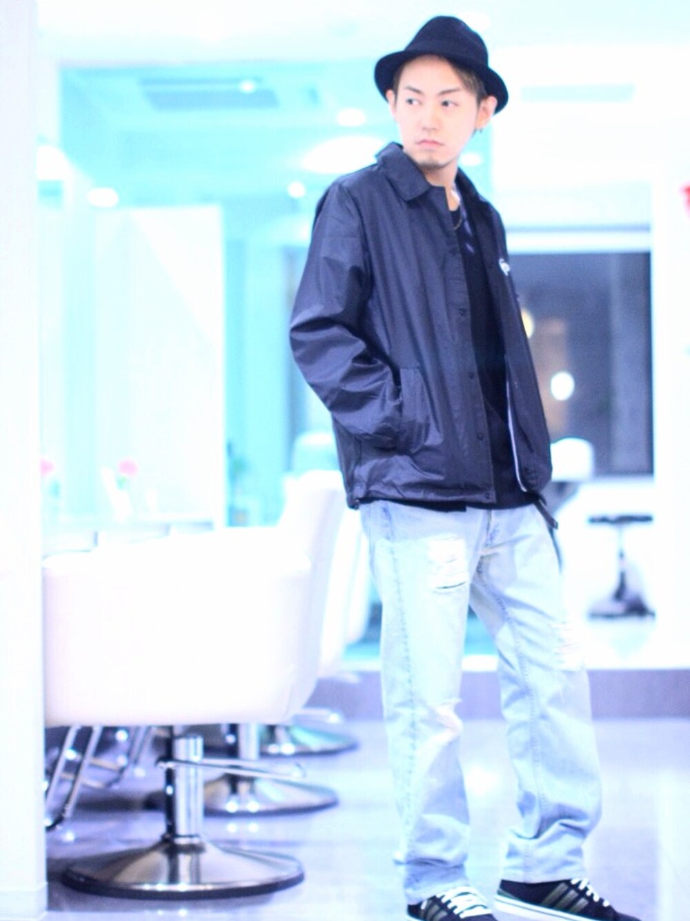 今日はゆるくカジュアルにワイドジーンズとコーチジャケットを合わせてみました 足元は最近購入したadidasのMIDスニーカーで合わせてみました