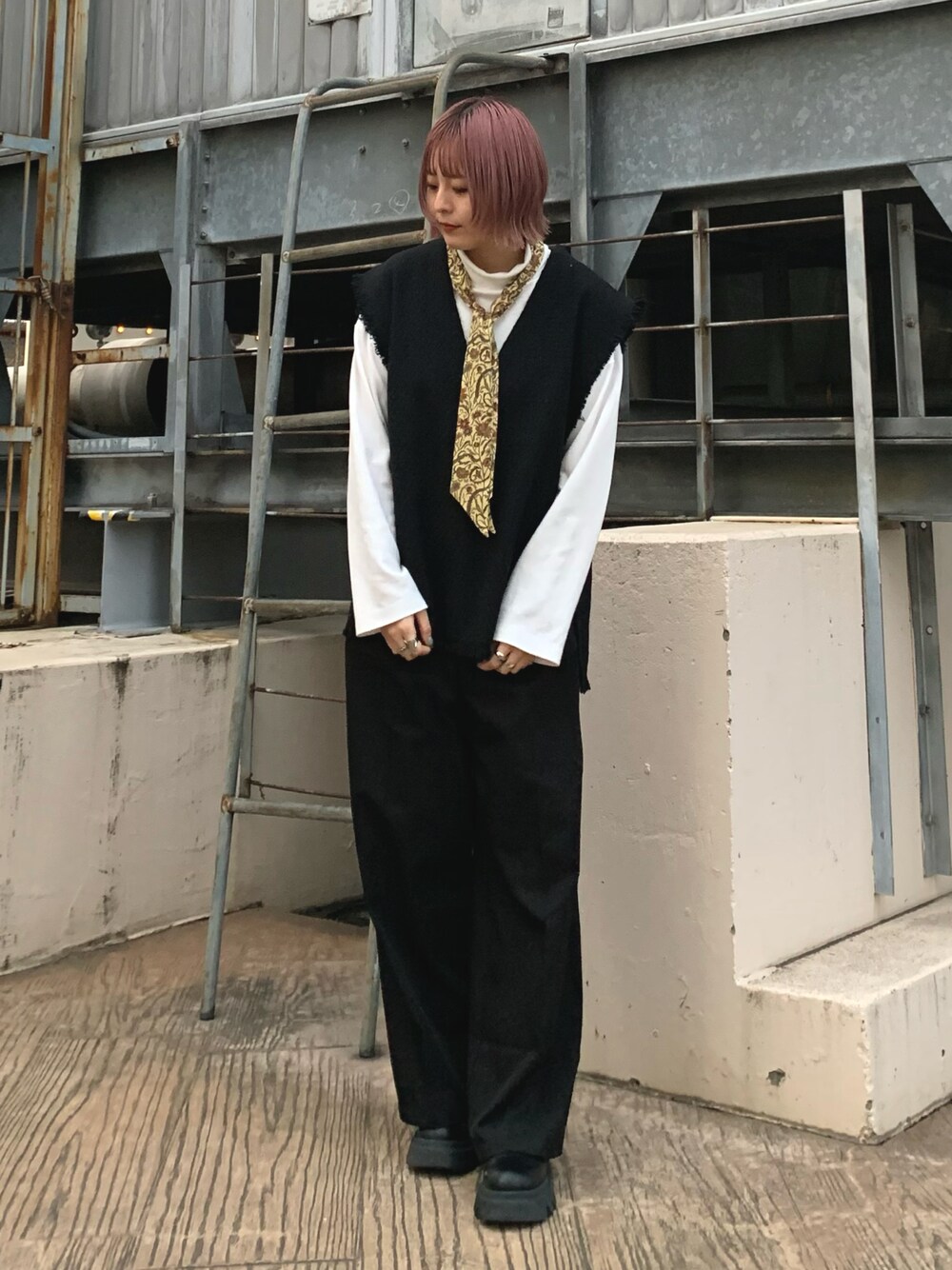 mizuki(tk.TAKEO KIKUCHI新宿ルミネエスト店)のベスト「◆ツィードフリンジベスト」を使ったコーディネート