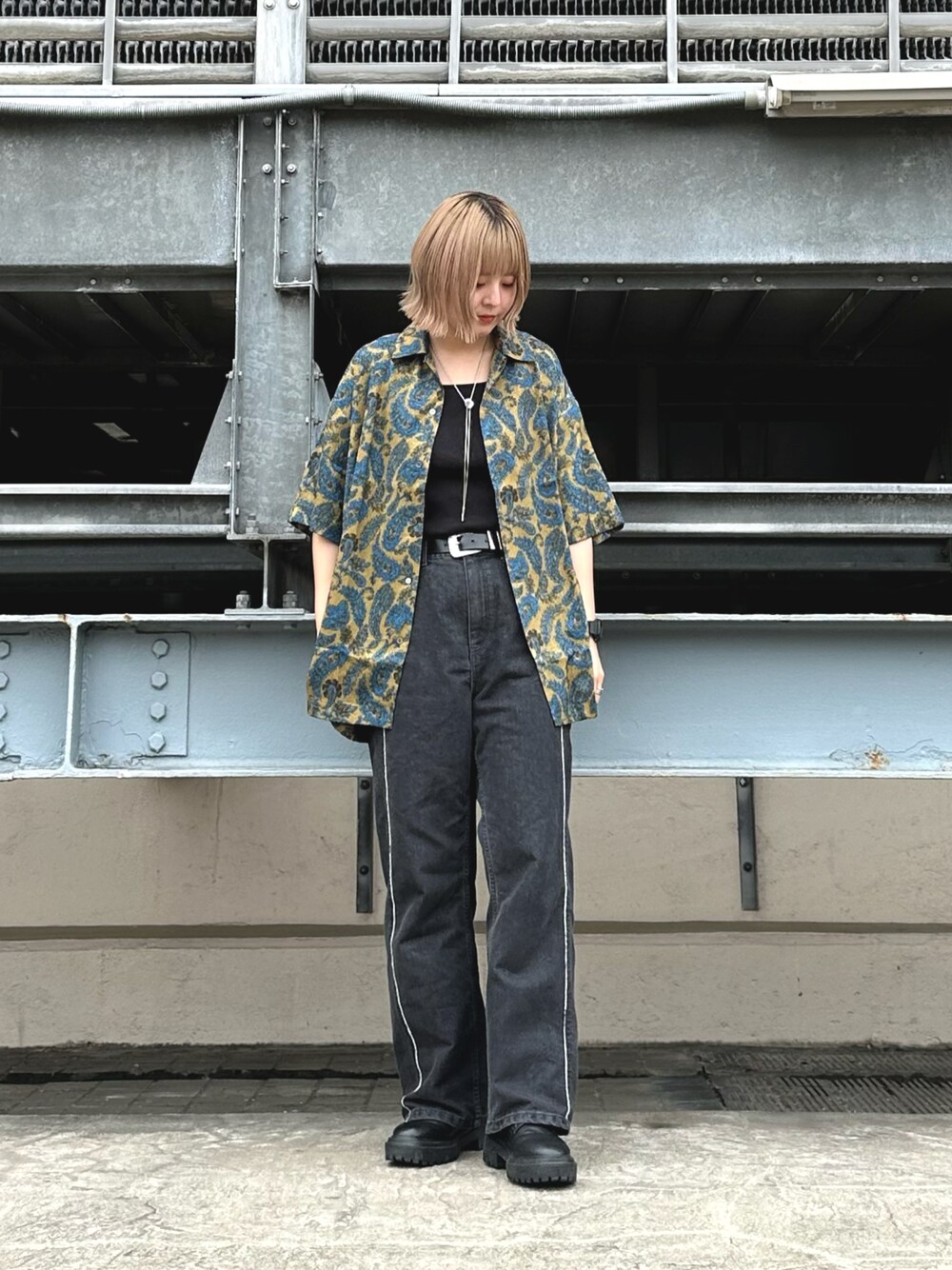 ペイズリー柄のシャツを使ったスタイリング。 落ち感のあるやわらかい素材で、薄手なので夏でも涼しく着ることができます! シャツの柄を主役にしたかったのでインナーやパンツはブラックでまとめました◯ 良かったらいいね、フォローよろしくお願いします🦭
