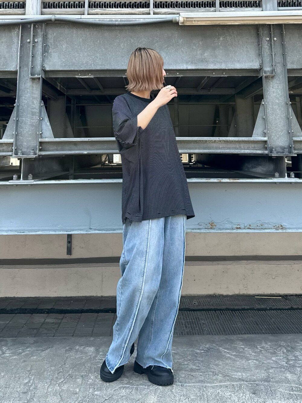 mizuki(tk.TAKEO KIKUCHI新宿ルミネエスト店)のTシャツ/カットソー「◆ポンチボーダー ムササビドルマンカットソー」を使ったコーディネート
