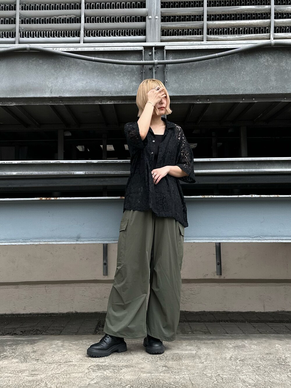 トレンドのレースシャツとカーゴパンツを使った夏スタイル☀️ パンツはナイロン素材で薄手なのでとても涼しく、楽に着ていただけます◯ 良かったらいいね、instagramフォローよろしくお願いします🐈