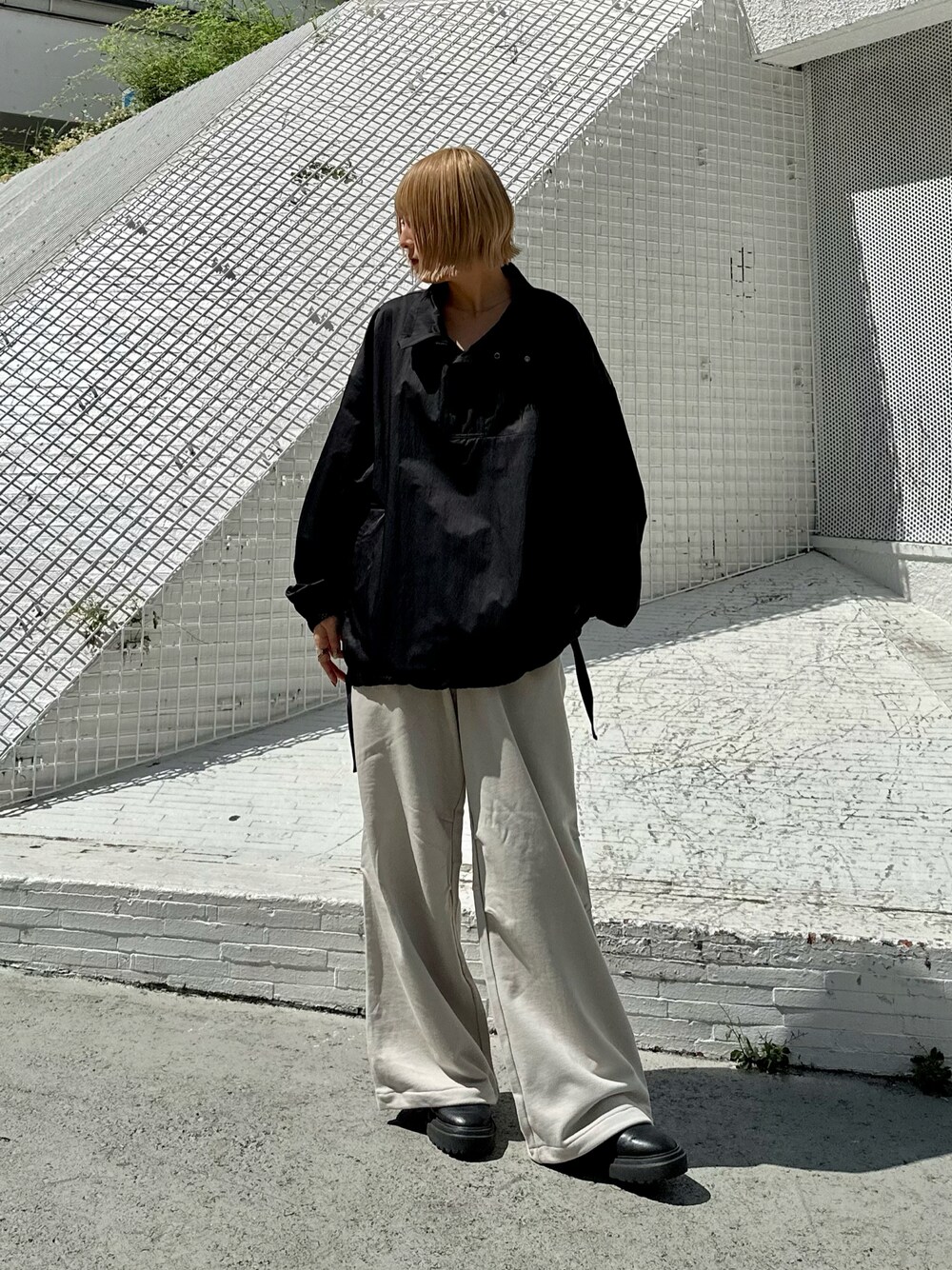 アノラック×スウェットパンツ トレンドアイテムを使ったモノトーンスタイリング🐼 パンツは裾を絞ることもできるので、スタイリングによって雰囲気を変えることができます◎ いいね、instagramフォローよろしくお願いします!