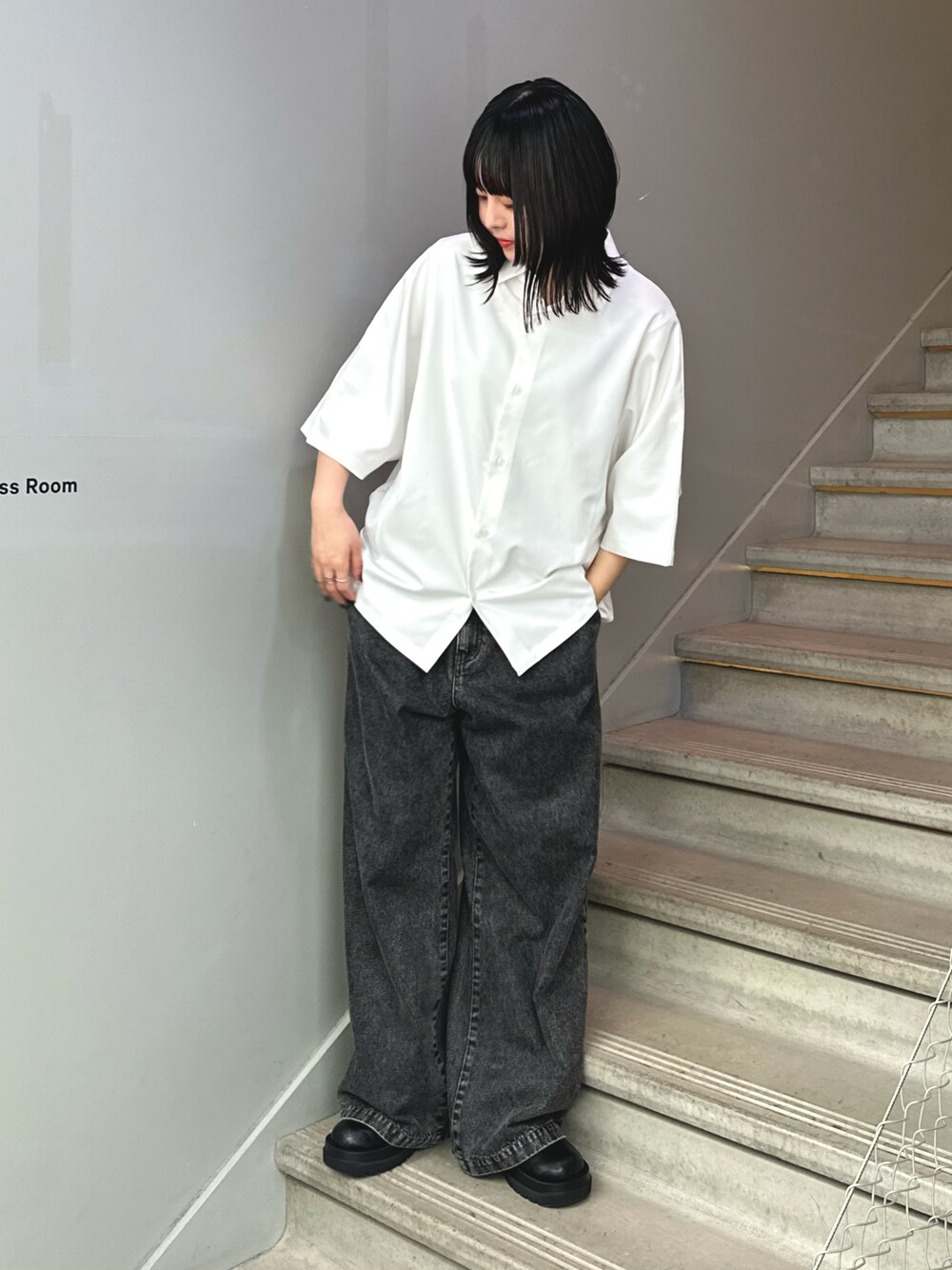 ドルマンスリーブが特徴のシャツ。 シルエットがゆるっとしているので、シャツですが少しラフで柔らかな印象で着ることができます◎