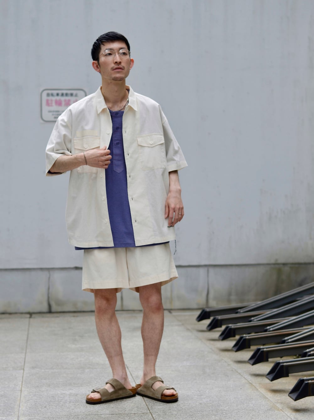 白セットアップにビルケン。 休日はこのくらいラフな感じが良いですよね。 ブルーのヘンリーネックTが個人的にお気に入り。 Instagram @haruka___gatta