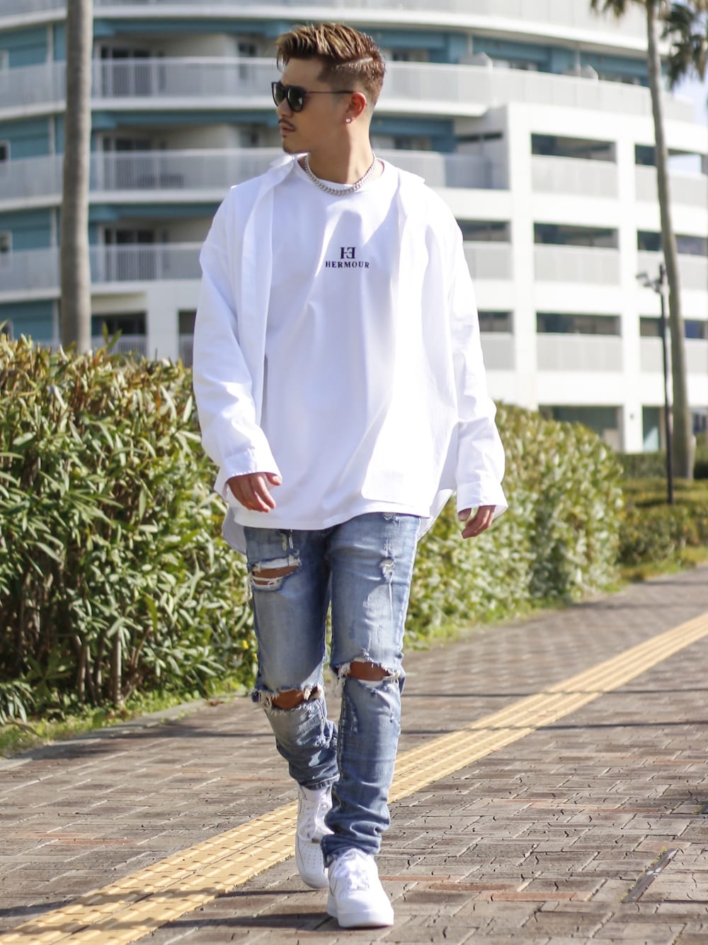 Instagramも宜しくです🔥半身浴しながら投稿😌#女子かーい 🛁 何でも大きい方が良いと思う色々ね😌👙🩱🩲←こんな絵文字あったけw . オーバーシャツめちゃくちゃ良い感じ🤦 インナーとのバランスも神👼 . デニム×ホワイトは永遠不滅。
