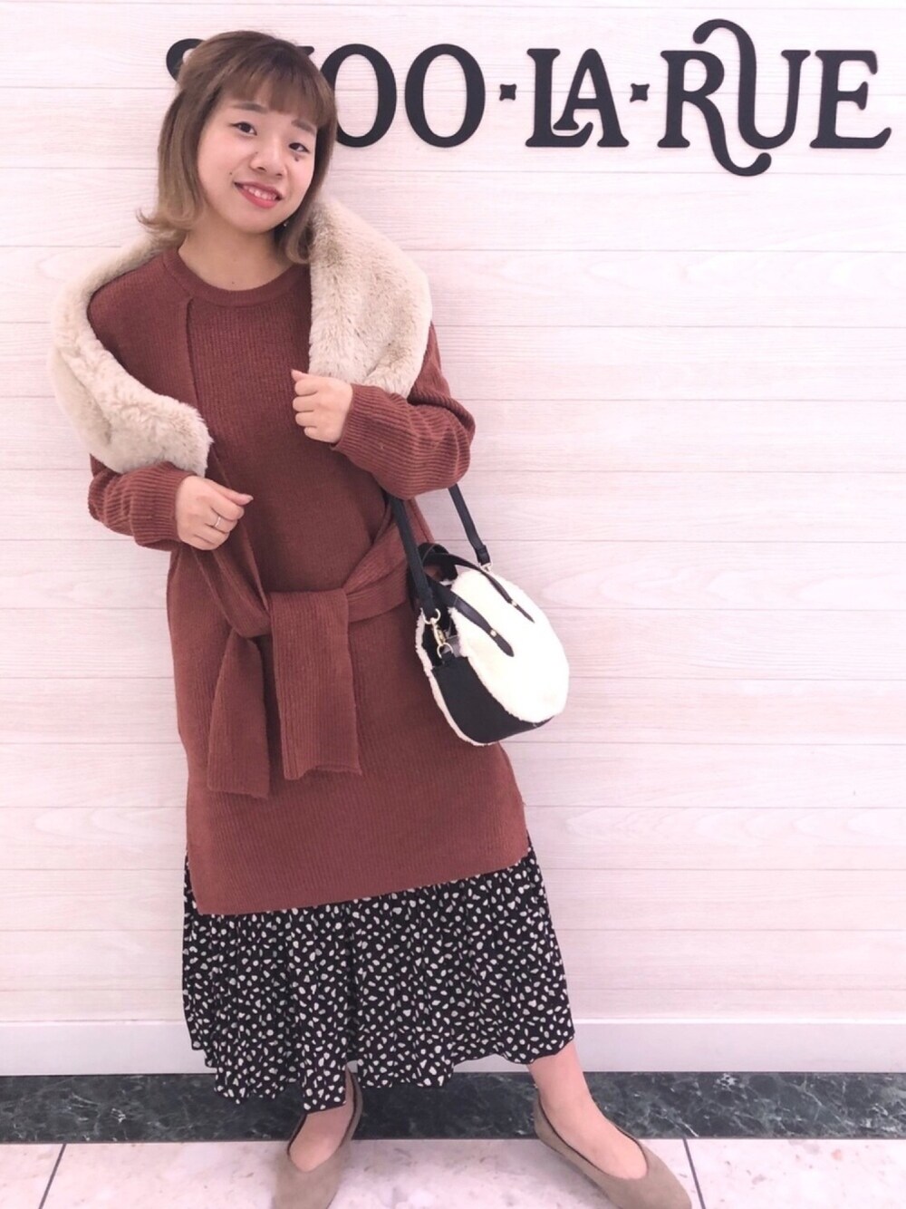 まちゃんなちゃんのショルダーバッグ「◆2WAY ボア×レザー調サークルショルダーバッグ」を使ったコーディネート