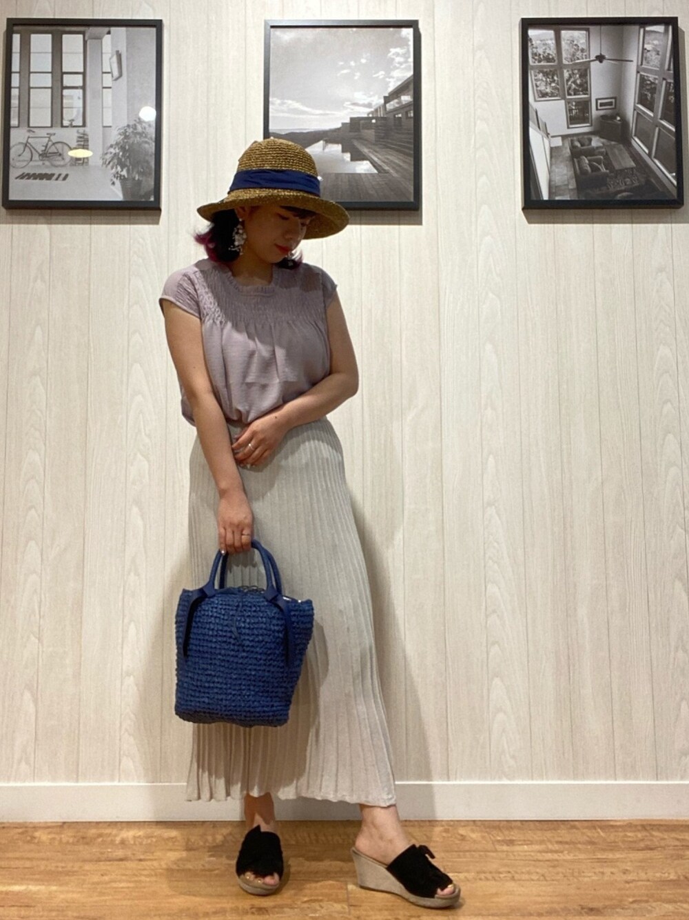 こんにちは、mです😊 本日はオススメコーデです💁♀️ スカートは以前も紹介したタイトスカートです!骨格ウェーブの私でも履けた、タイトすぎないスカートです😆❤️ 接触冷感機能付きの夏に嬉しいアイテム❤️🔥 ブラウスはシャーリング素材のフリルが可愛らしい1枚です💖🌱 雑材bag、帽子はブルーカラーをチョイス! 夏らしいコーデに❤️🔥❤️🔥 最後まで見て下さりありがとうございます😊 いいねとフォローお願いします😊