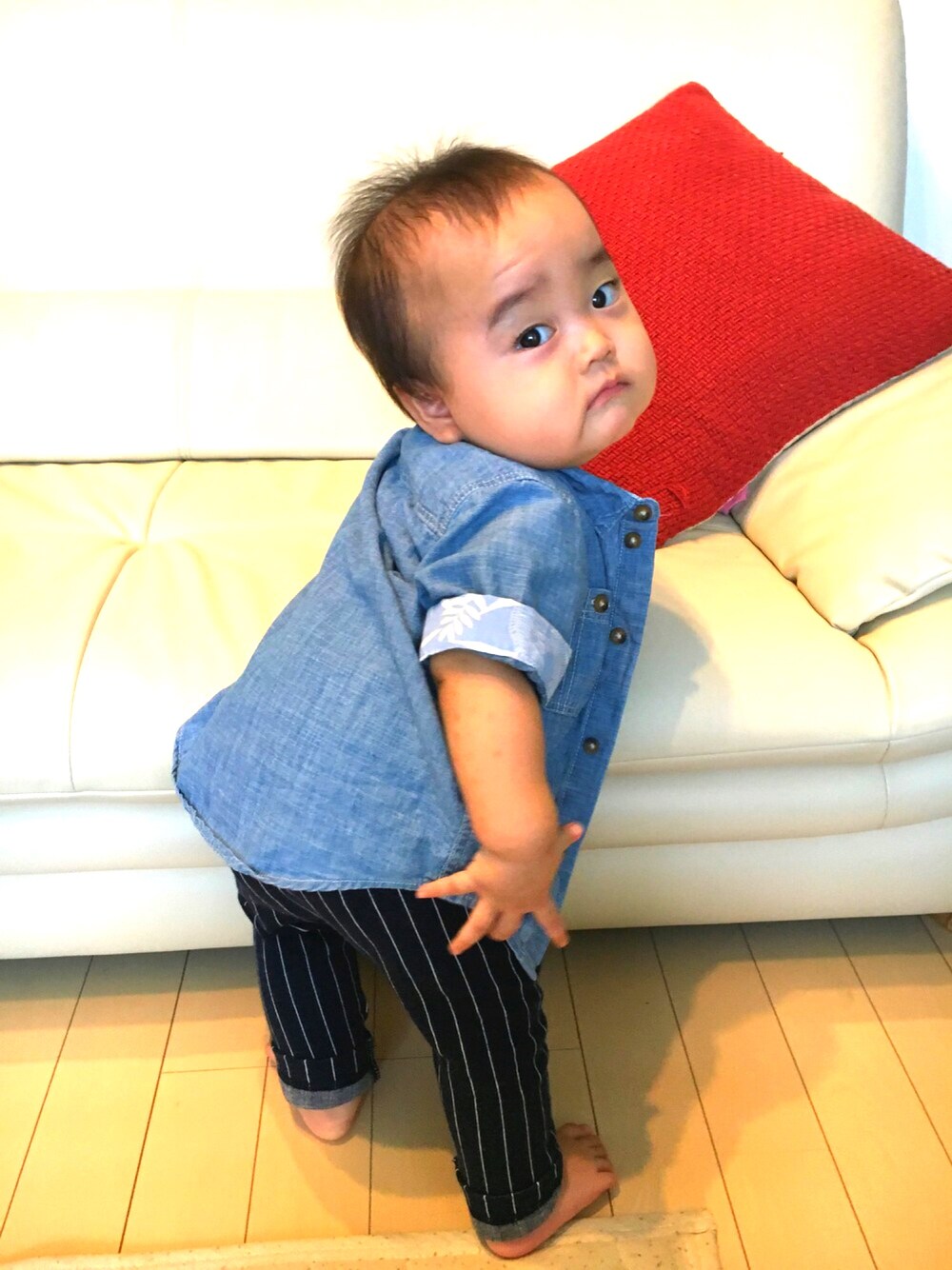子供の服の記録用に...✎✐ やっと秋らしい天気に🍁🍂 朝晩は冷え込んで肌寒いけど日中はまだ暑い😅 半袖の羽織り着てたけどやっぱり暑いらしく 汗かいたのですぐ脱がしました 息子のポーズ、なぜかへっぴり腰に...ꉂꉂ🙊