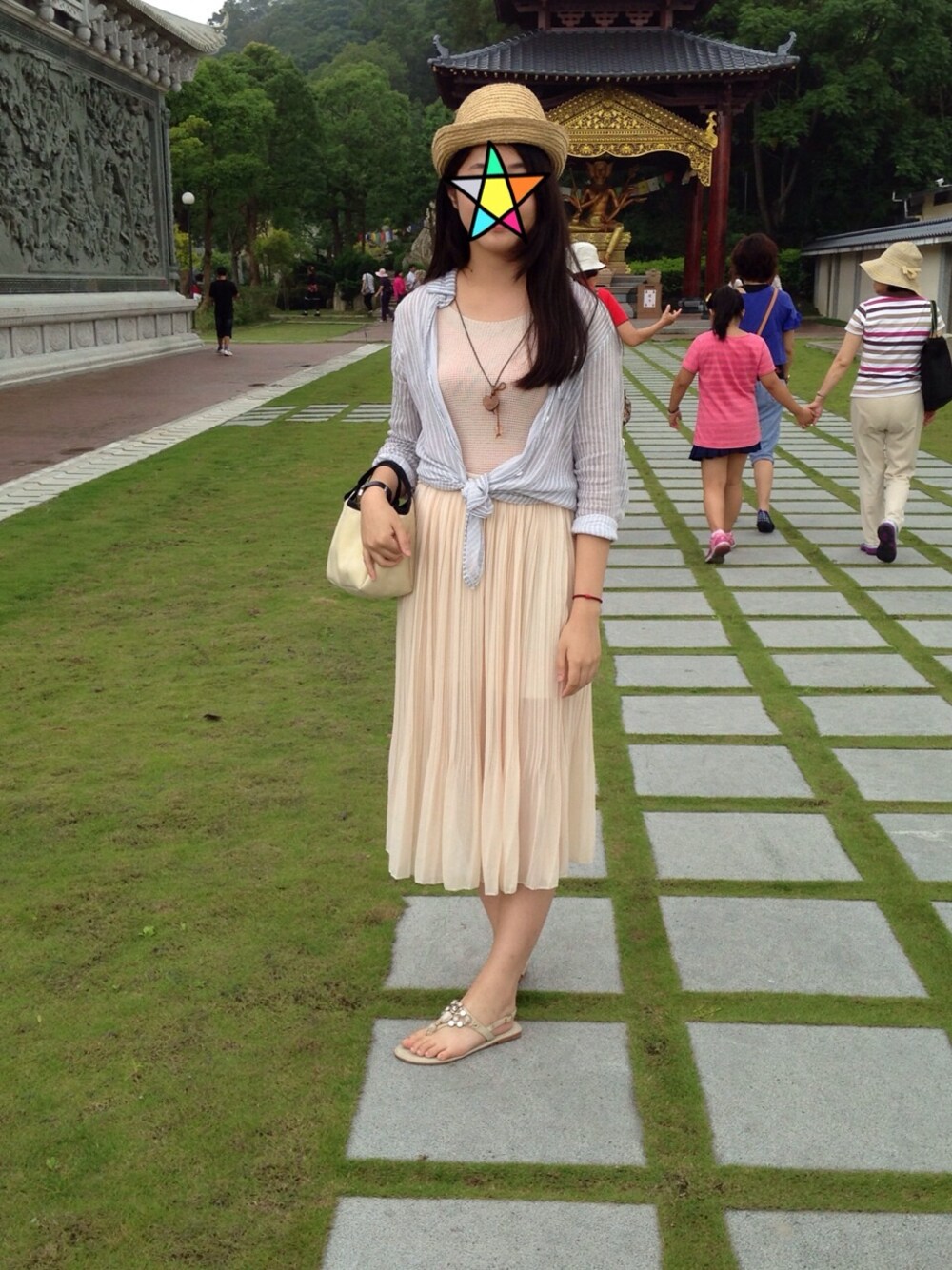長裙穿搭 外襯衫 內長裙 草帽 夾腳涼鞋