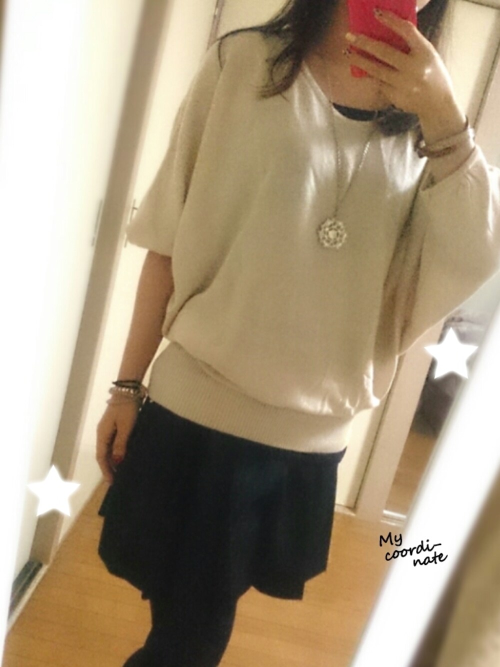 服がなーい! 今日は夜遊びデーなのに着ていく服がない! 通販で買ったまま着てなかった地味なニットをチョイス。 キュロットはそろそろやめないと。と考えつつチョイス。