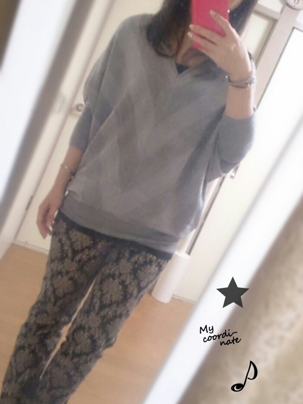 Gala 久しぶりに会う人にシックすぎる印象をもたれるのが嫌だったので明るめにしたら柄かぶり。 夜だしまあいいか。 本日はお祝いにワインビストロ。