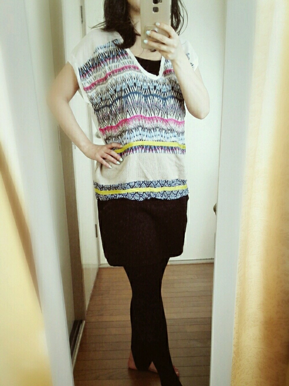 久しぶりのアップ このトップにはいつもパンツなんだけどミニも悪くないかも?