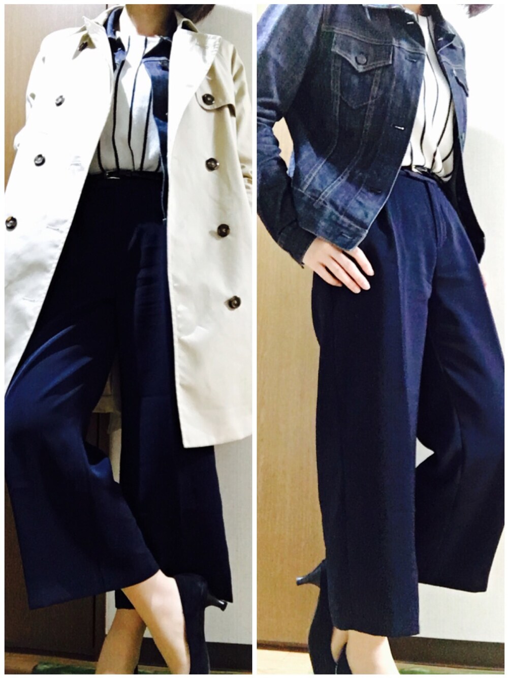 表参道にショッピング 春だけど寒い日だったので トレンチの下にデニムジャケット