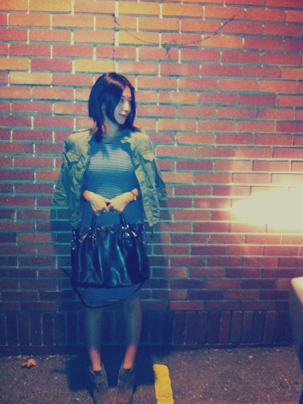 Border dress + Military jacket 誕生日に食事に行った時の服装。 お気に入り。 ボーダードレスは身体の線が出ちゃうので ワークアウト必須の戒めドレス。