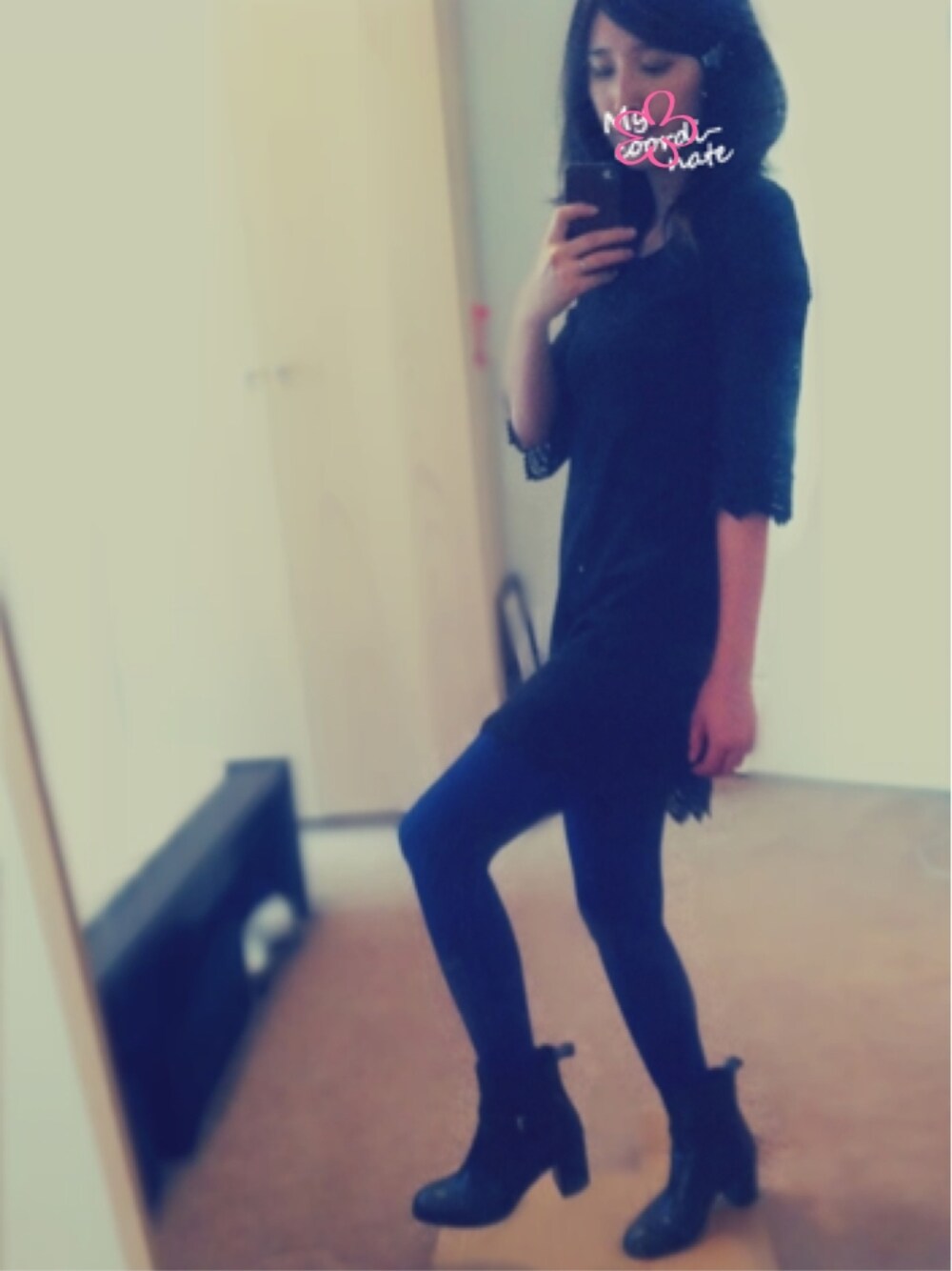 Black mini dress 腿上げダンス 黒いレースのワンピースで、まるで秋の装いですね Blueのタイツ履いたんですけども、生足のが春っぽかったでしょうか 生足でコンバースにポニーテール、がよかったかも チェックのシャツ羽織ったり、、、今度やってみます 髪留めはネコちゃんです