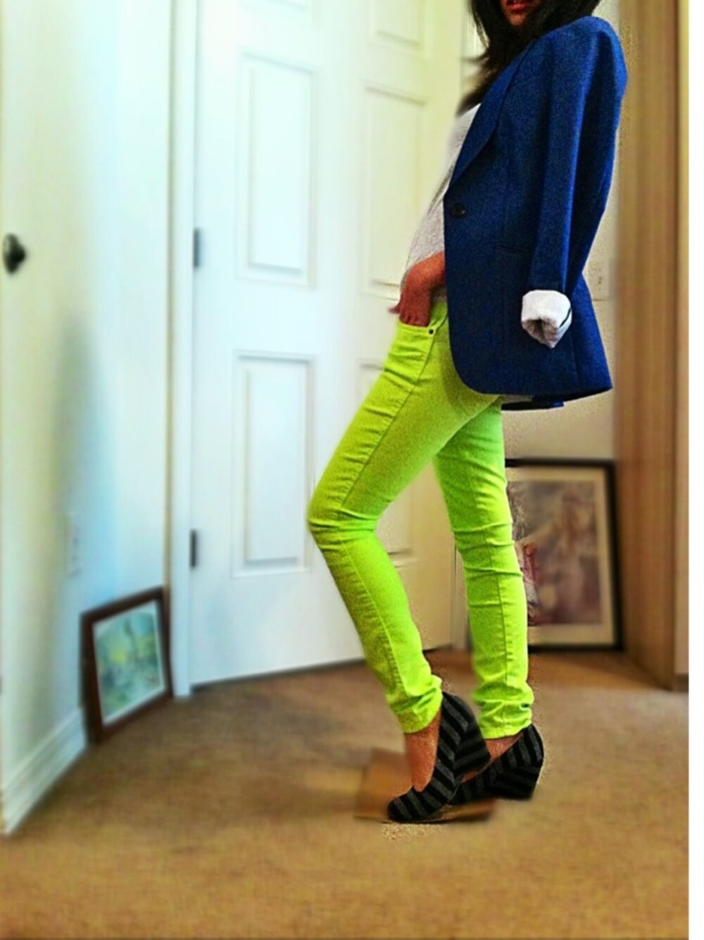 Neon yellow pants 体重の増加と体の衰えに歯止めがききません ジム行かなきゃいけないのに、 ぐうたらの自分が勝ちます いい加減にしないと取り返しがつかなくなるー やるぞー‼ 先日購入したF21のカラースキニーに デニム地のジャケットを合わせて インナーは透けラグラン 私、Neon Yellowが好きみたいです 一枚目の写真の色味が実際と近いです パンプス久しぶりに履いたら脚が鈍ってました 疲れたー いつかルブタンが欲しいです