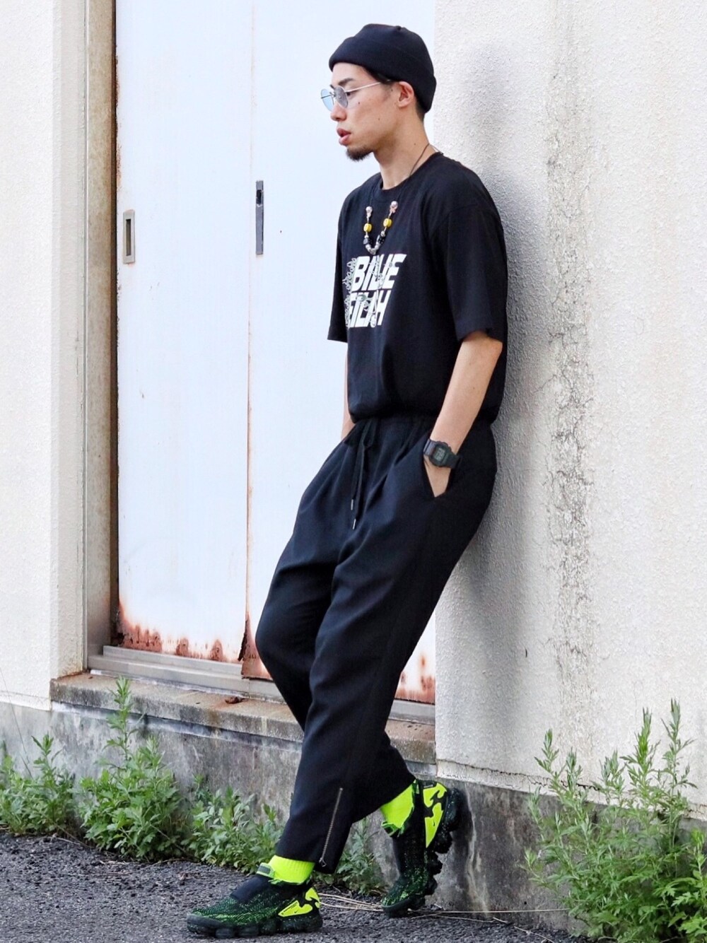 ストリートコーデ ブラック×ネオンカラーのストリートコーデです🔥 UNIQLO×ビリーアイリッシュ×村上隆が個人的にすごく良かったので、このデザインも買い足しました😁 お気に入りがプチプラで手に入るのはホントありがたいですね😊