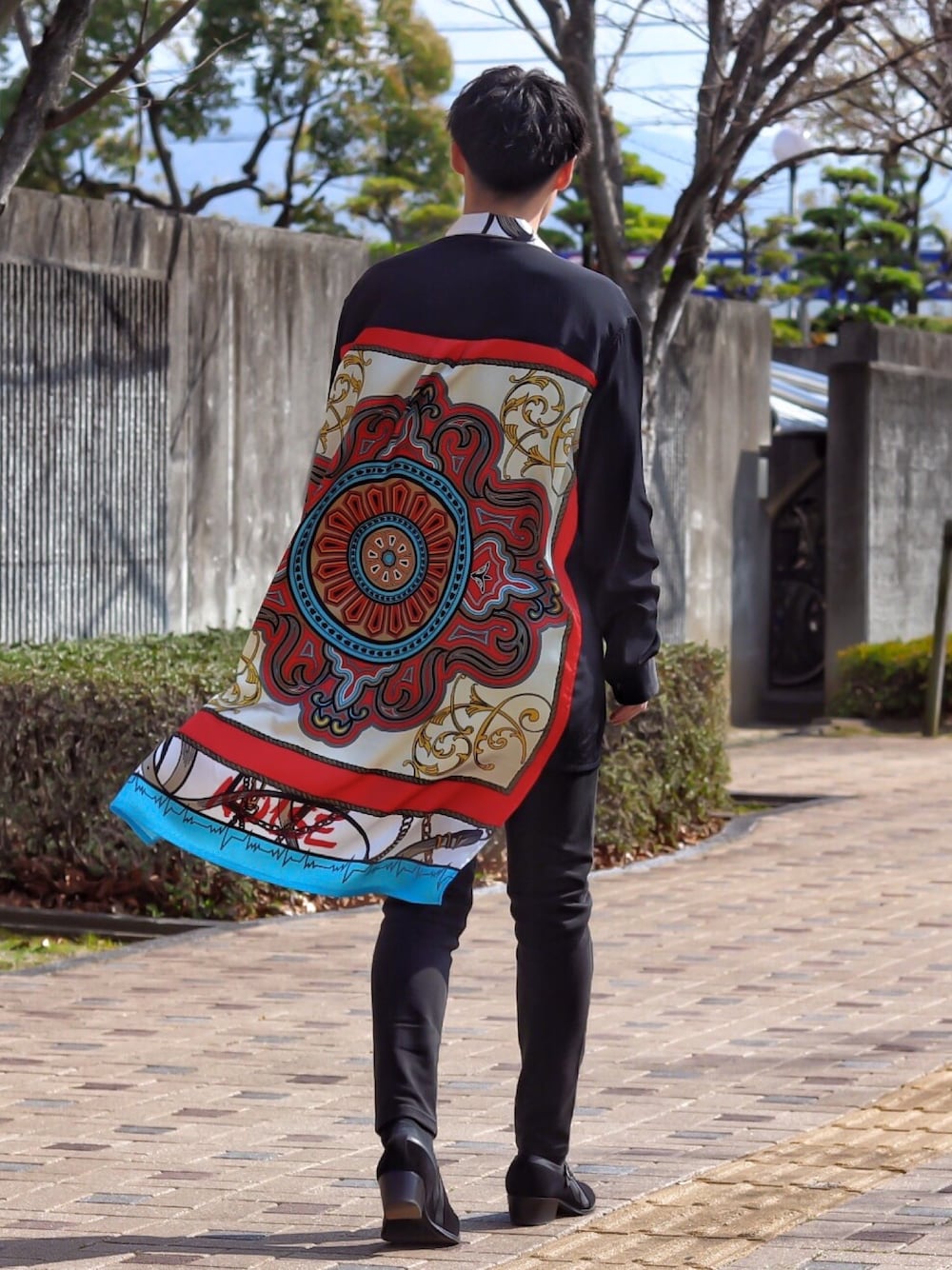 キレイ目スタイル ロングシャツがただかっこいいので、シャツをメインにパンツとシューズを何も考えず合わせただけのコーデ🔥 以下、そんなハイプなロングシャツの紹介。 ・ ・ ・ 2021SS NEW ARRIVAL 【ブランド名】 noise maker(ノイズメーカー ) 【ブランド説明】 素材の良さはもちろん、パーツひとつひとつに丁寧な工程を施し、立体的で着心地の良い1着を作ることをモットーとしており、デザインのみならず、袖を通した瞬間の心地よさを大切にしているブランド。 【商品名】 オリジナルスカーフ柄バック切替ロングシャツ 【商品価格】 24200円(税込) 【商品説明】 オリジナルのスカーフ柄プリントを大胆に背中全面に使用したロングシャツ。 オープンカラーであり、ボタンの掛け方を変えるだけで3通りもの着こなしが可能。 1番上のボタンを閉めてドレッシーに、1番上のボタンを外してカジュアルに、そしてフロントのボタンを全て開けることでコートの様に着用することもできる。 生地について、 ボディ部分はレーヨンとポリエステルを組み合わせ、エレガンスでありながらカジュアル感も感じられる創り。 肌触りは快適であり、まるでシルクの様である。 デザインのメインとなる、オリジナルスカーフ柄部分には高級織物の福井産地で織り上げた、滑らかな肌触りと上品な光沢感が特徴のサテンを使用。 プリントは従来、手捺染で行っていたものをインクジェットの最新技術と、京都の伝統的な手法を併せることで、鮮やかで深みのある発色に再現した。 汎用性も抜群であり、ワイド目なパンツと合わせる事でモードな印象に。 スラックスやスキニーなどタイト目なパンツと合わせる事で綺麗目でかっこいい印象に。 また、デニムやチノパン、スニーカーと合わせてストリートな印象にもなり、あらゆるコーディネートに合わせることが可能である。 このコーデを見てオシャレだなと思っていただけた方に言いたい。 よーく見てくれと。 オレはこのシャツに黒のパンツと黒の革靴を合わせているだけだ。 ただパンツと靴を合わせただけなのに、オシャレになることができる。 それってすごくない? かっこいいだけじゃなくて、めちゃくちゃ便利な商品。 本日ZOZOTOWNで1000円引きクーポン出とるし、もう数少ないよ。 買うなら今がチャンスです‼︎ いや、ホントかっこいい‼︎ マジでおすすめ👍