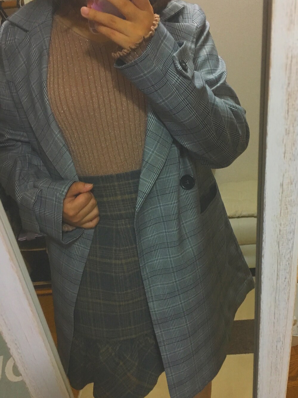 全身ナイスクラップ秋物コーデ。 キラキラニットのお袖とスカートのフリルが可愛い💕