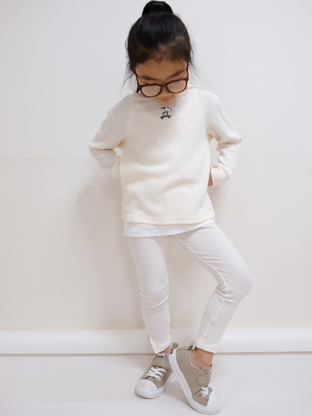 Little Anのパーカー「[100-130]【PEANUTS×a.v.v】SNOOPYワンポイントワッフルフーディ[WEB限定サイズ]」を使ったコーディネート