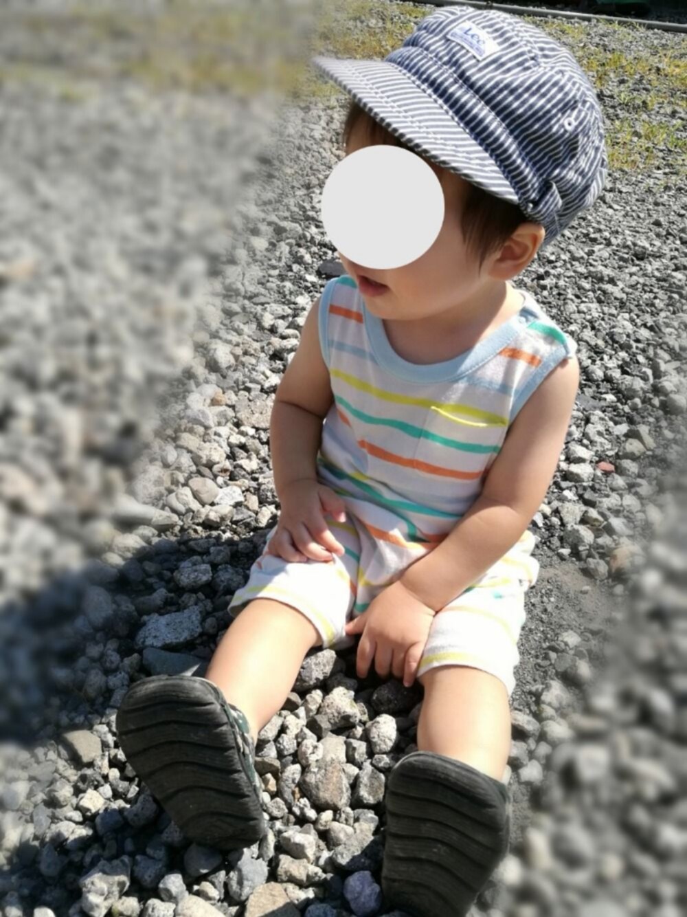 ブルー系の帽子を着用したキッズの秋コーディネートの1枚目の写真
