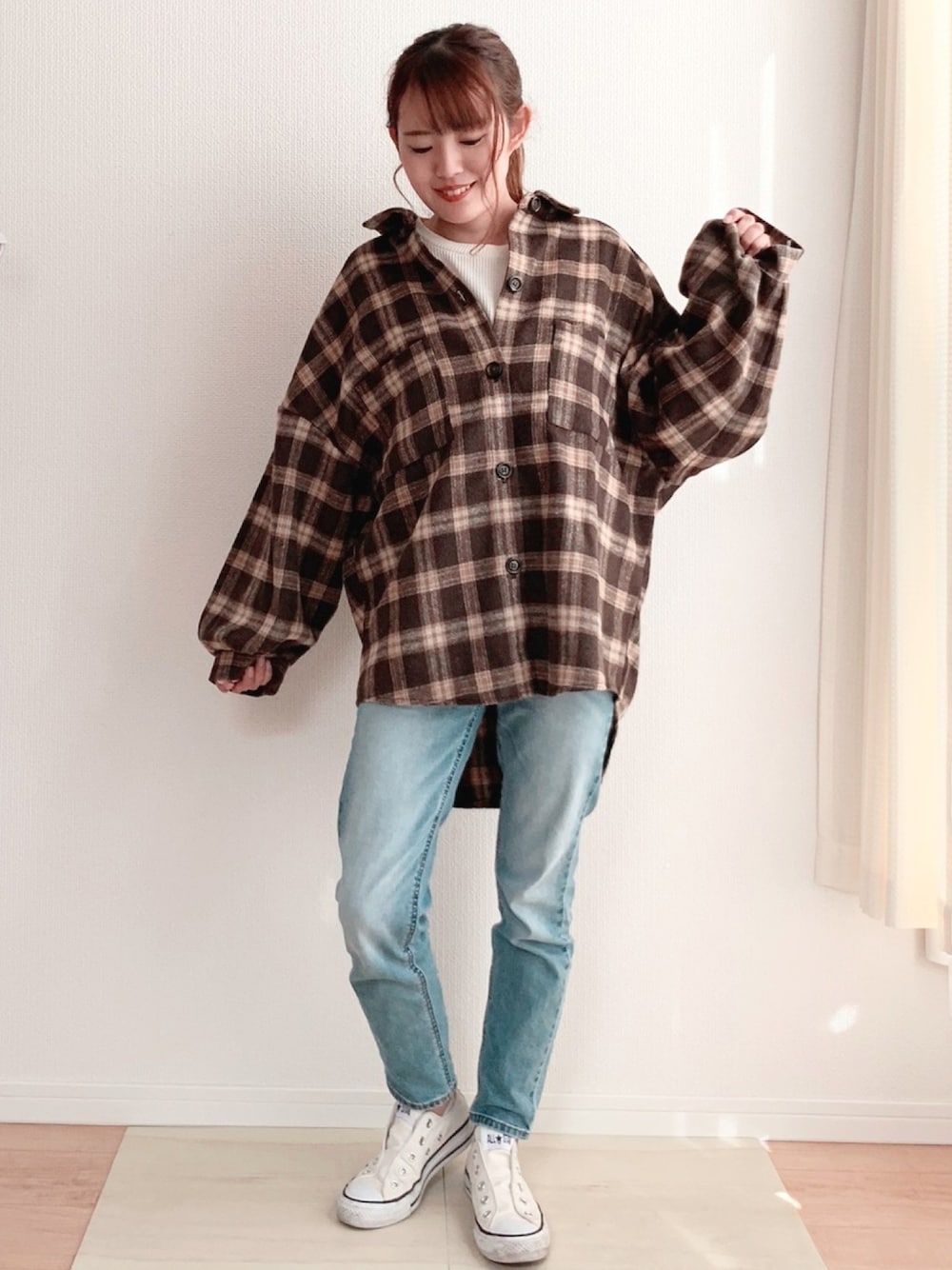 チェック柄に恋してる😙💓 見ていただいてありがとうございます😊 チェック柄に恋してるも最終日かぁ😚 今日はチェックの人、きっと多いよね🤤💓 今日は羽織ではなくシャツとしてボタンを閉じてきてみました😚 食べ過ぎてお腹が出ちゃっても隠せるオーバーサイズ最高ーー😂❤️❤️ シンプル過ぎて載せてよかったのか…😭沈 いいね、お気に入りいつもありがとうございます🙇♀️💓