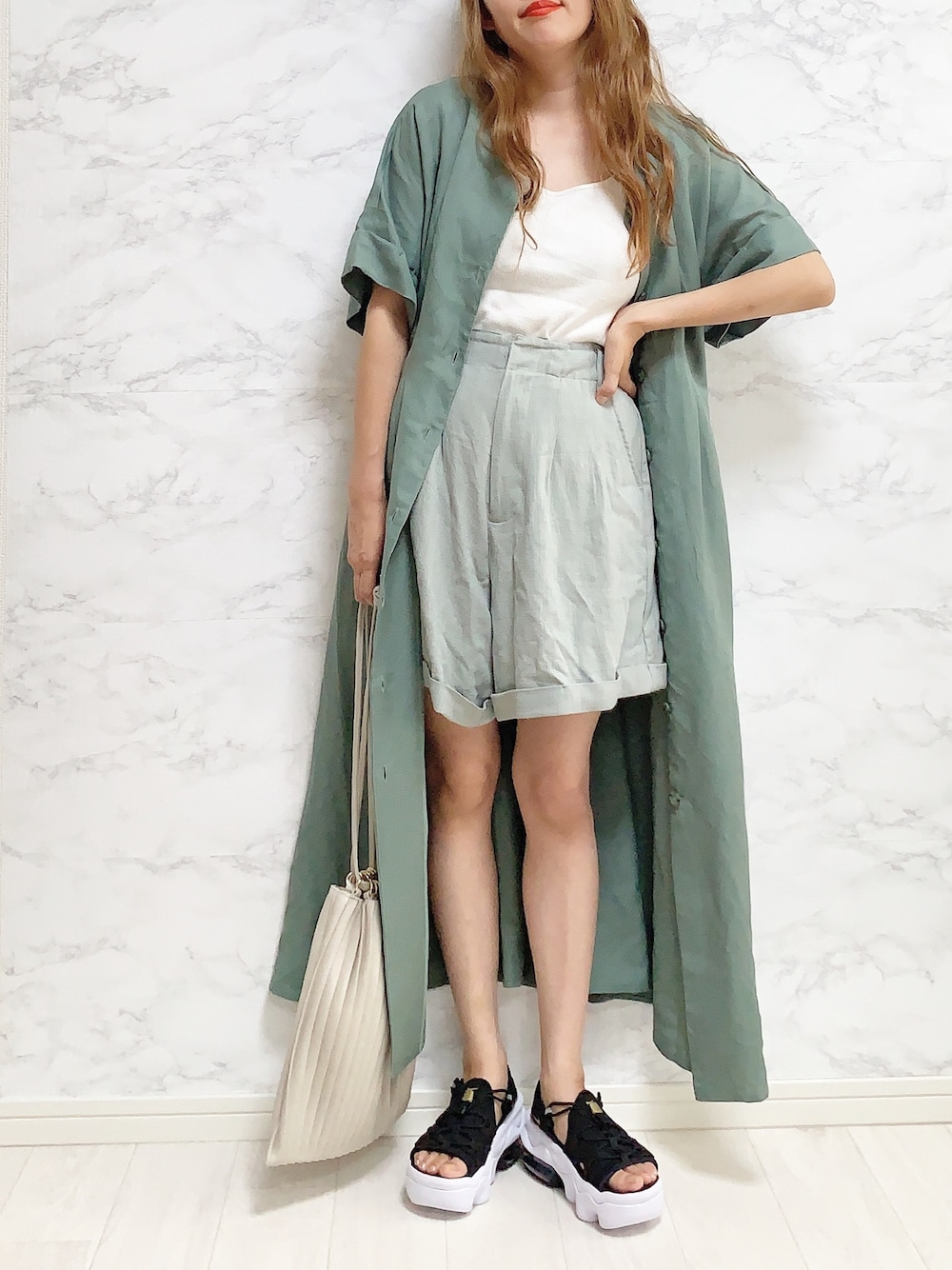 見てくださりありがとうございます🐻 連投です(/. .\) KBF/2WAYベルトワンピース ▻► 羽織にしました🧡 ボタンを後ろ前でも着ることができるし 着まわしきく便利なワンピース🙋 Mysa&Liinaさんの レーヨン麻スラブパンツは 大人でも履ける丈感でお気に入りです💓 Instagram→anmi_wear