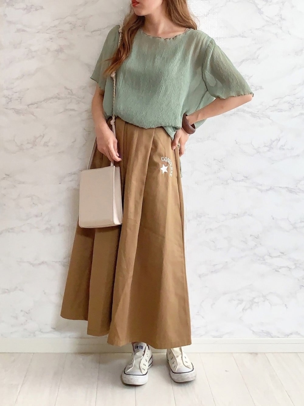見てくださりありがとうございます☺︎ 今日のピックアップタグ🐻 #コンバース 👟 CONVERSE大好きなので のっかります🙋🧡 AmbreNeige/楊柳ブラウス/シフォンブラウス/【WEB/EC限定商品】 ▻► 綺麗なグリーンのやわらかなブラウス❁⃘*.゚ キャミソール付き\(^ω^)/︎💕︎ 丈長めで、インしないで出しても可愛い♡ 初めてアベイルでお買い物🧡 このCONVERSEのスカートが可愛くて🤤 3000円くらいでした🙋 …タグ付けたの似てるやつで同じのじゃないです🤭まずい…?😂笑 ┈┈┈┈┈┈┈┈┈┈ bukichoさん♡ maiさん♡ しょう🐤🐦🐧さん♥ masakazuさん♥ にゃん😿さん♥ フォルダイン ありがとうございます💓☺️ ┈┈┈┈┈┈┈┈┈┈ Instagram→→anmi_wear