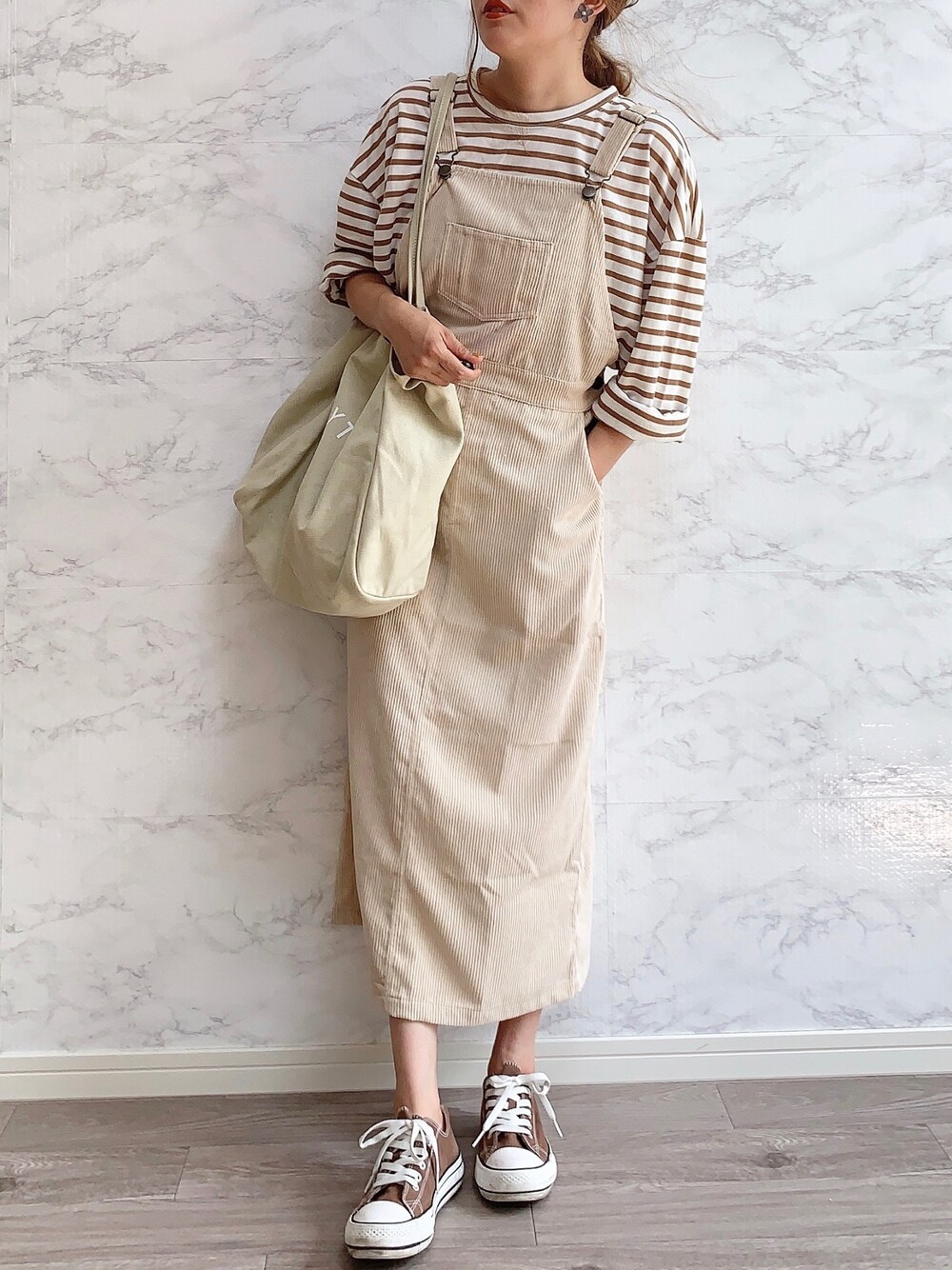 anmiのジャンパースカート「コーデュロイジャンスカ」を使ったコーディネート