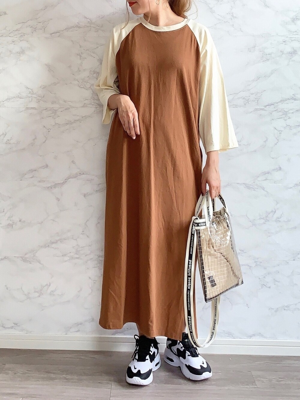 anmiのワンピース「配色ラグランワンピース」を使ったコーディネート