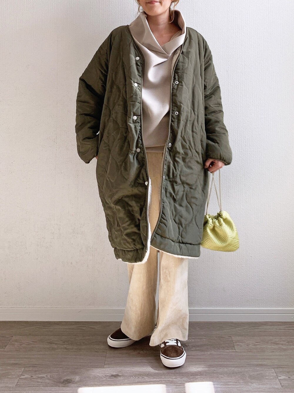 見てくださりありがとうございます☺️ An3pocketさんの ボアフリース×キルティング 2WAYノーカラーロングコート キルティングの方を表で着てみました♡ どっち側も可愛くて使えるコートです♥️ socollaさんの ダンボールヌケエリプルオーバー 着回し♪ 𝕝𝕟𝕤𝕥𝕒𝕘𝕣𝕒𝕞⇒anmi_wear