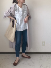 anmiのシャツ/ブラウス「【WEB限定】ドビーチェックレースブラウス」を使ったコーディネート