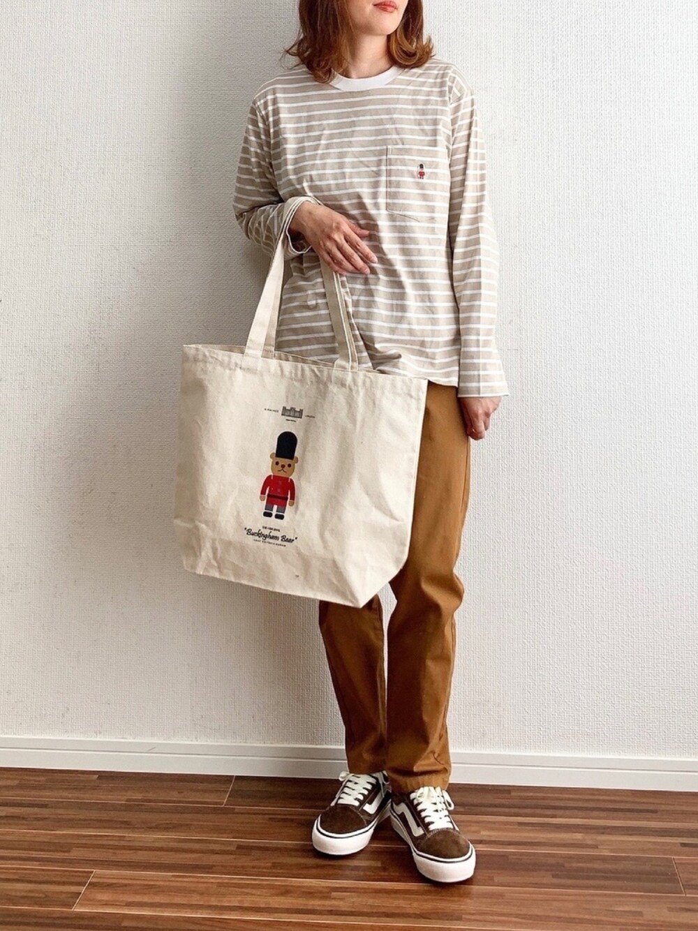 ベージュ×ブラウンの ワントーンコーデ🧸⸒⸒ バッキンガムベアが 本当に可愛い🙈♥️ ボーダーTシャツはキッズ用のサイズもあるので 子供とおそろいコーデにもオススメです🥰 《 MACKINTOSH PHILOSOPHY 》 ▸▸▸ 【BUCKINGHAM BEAR】クルーネックロングスリーブ ▸▸▸ バッキンガムベア トートバック Instagram➞anmi_wear