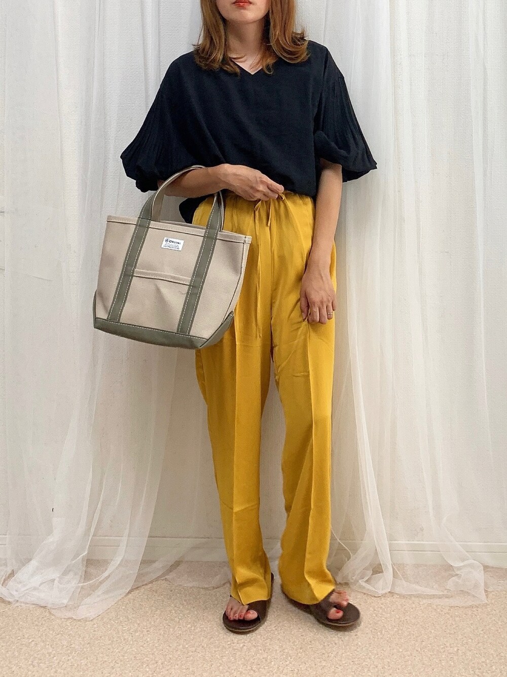 見てくださりありがとうございます𖧷 イエローのパンツをお探しの方に オススメしたい…!!! Auntie Rosa Holiday/ カラーイージーパンツ ウエストがゴム❣️ つるんとした生地感、 足首に向かって細くなる美シルエットで しっかりイエローの色味💛 可愛すぎるので要チェックです😘 green label relaxing/ FFC プリーツ スリーブ Vネック ブラウス またカラーパンツと合わせてますが、 本当に万能なブラウスなんです❣️❣️ カジュアルにもキレイめにも使えるので たくさん着回せます💕 Instagram➞anmi_wear