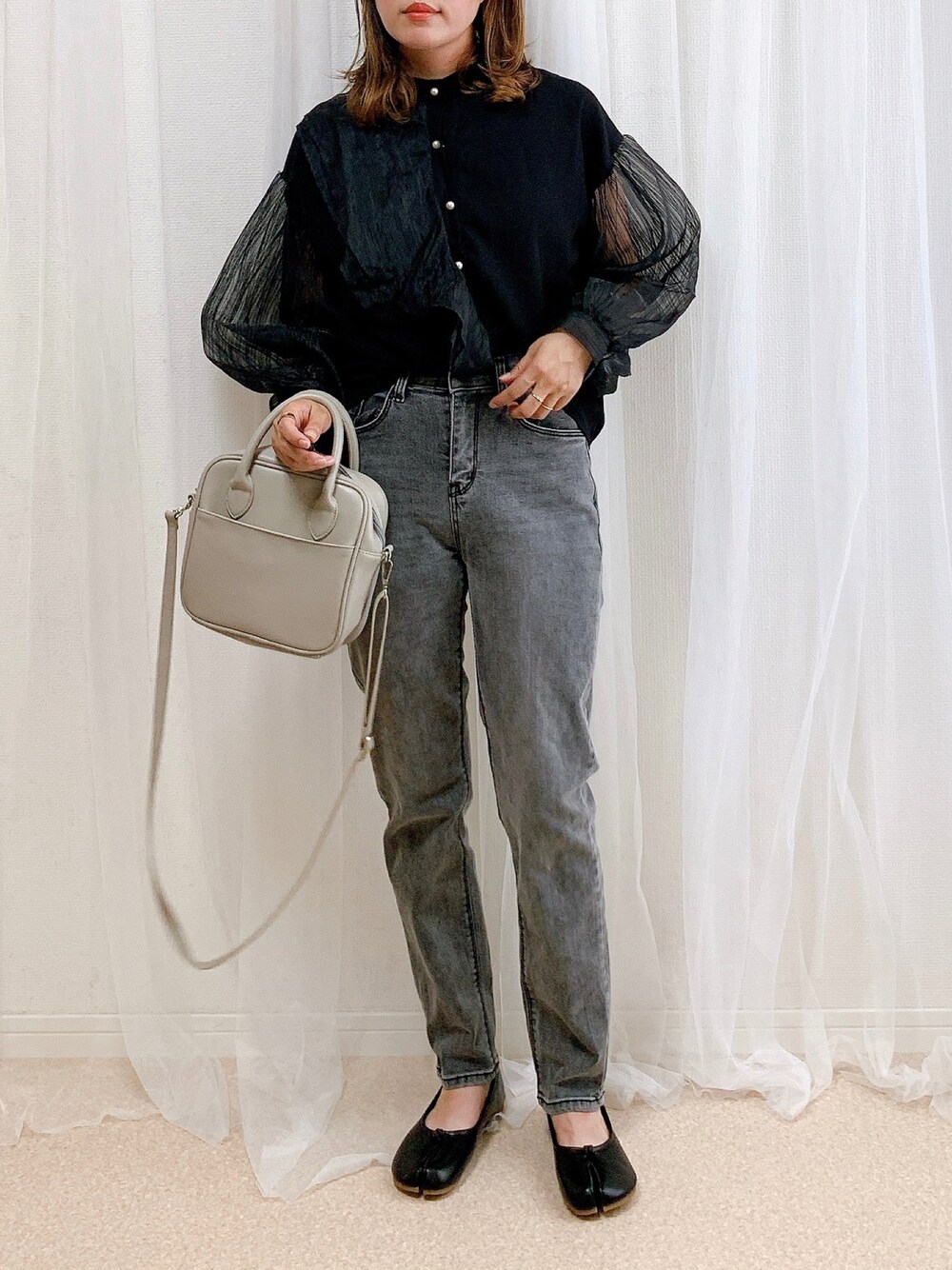 anmiのシャツ/ブラウス「ボリュームスリーブデザインシアーシャツ」を使ったコーディネート