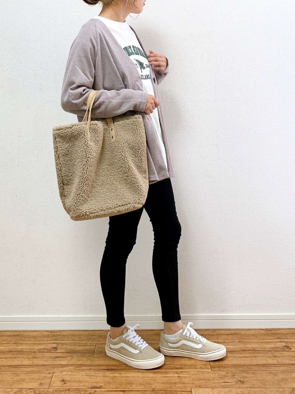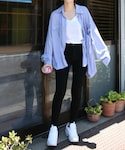 anmiのカーディガン/ボレロ「ウールタッチリブニットソー裾ラウンドカーディガン」を使ったコーディネート