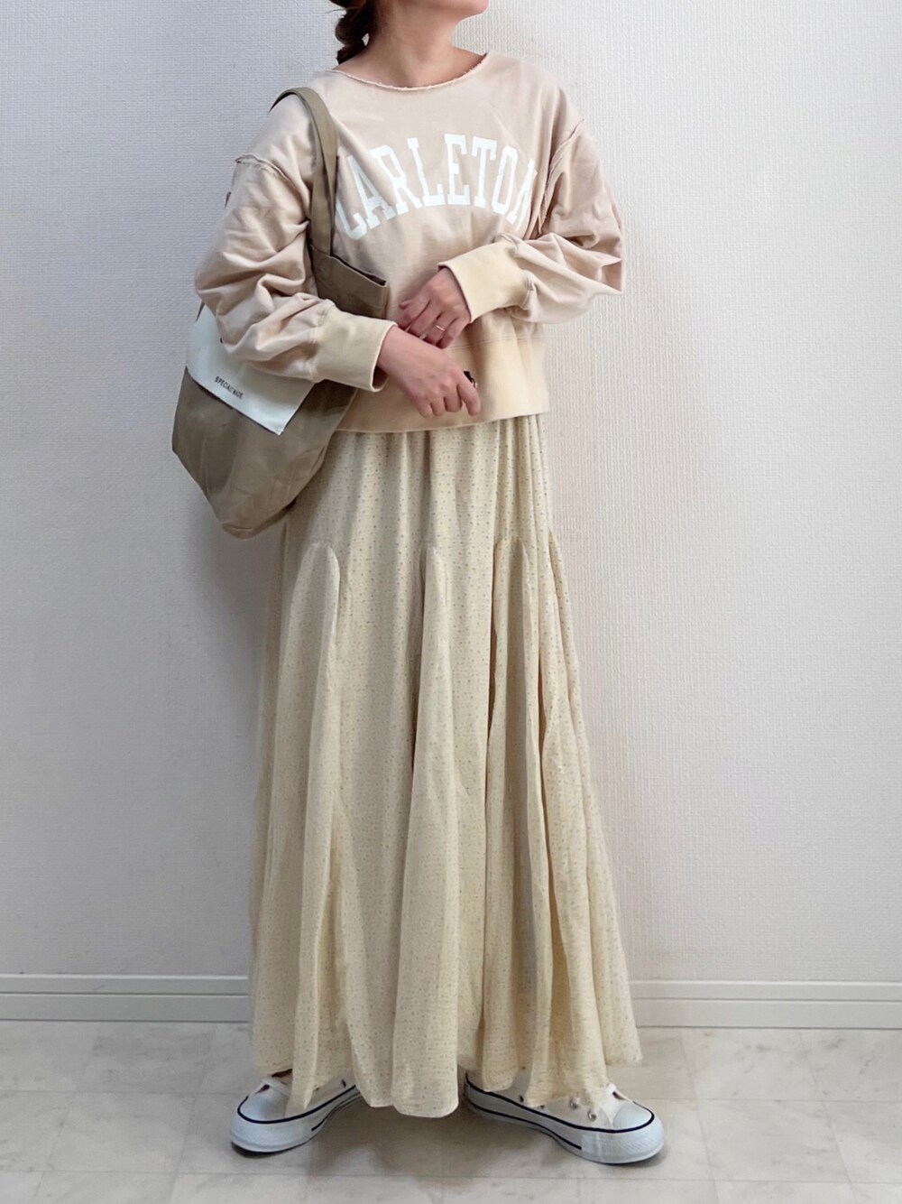 anmiのスカート「フラワーシフォンフレアスカート」を使ったコーディネート