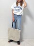 anmiのTシャツ/カットソー「バスク生地 ロゴプリントフレンチスリーブTシャツ 半袖Tシャツ」を使ったコーディネート