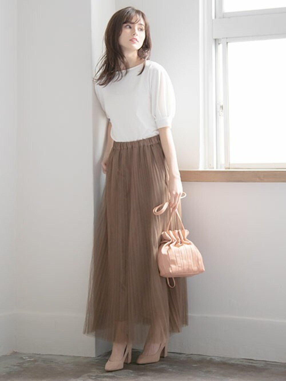 An3pocketのスカート「【着丈選べる!】ポケット付きウエストゴム チュールプリーツスカート」を使ったコーディネート