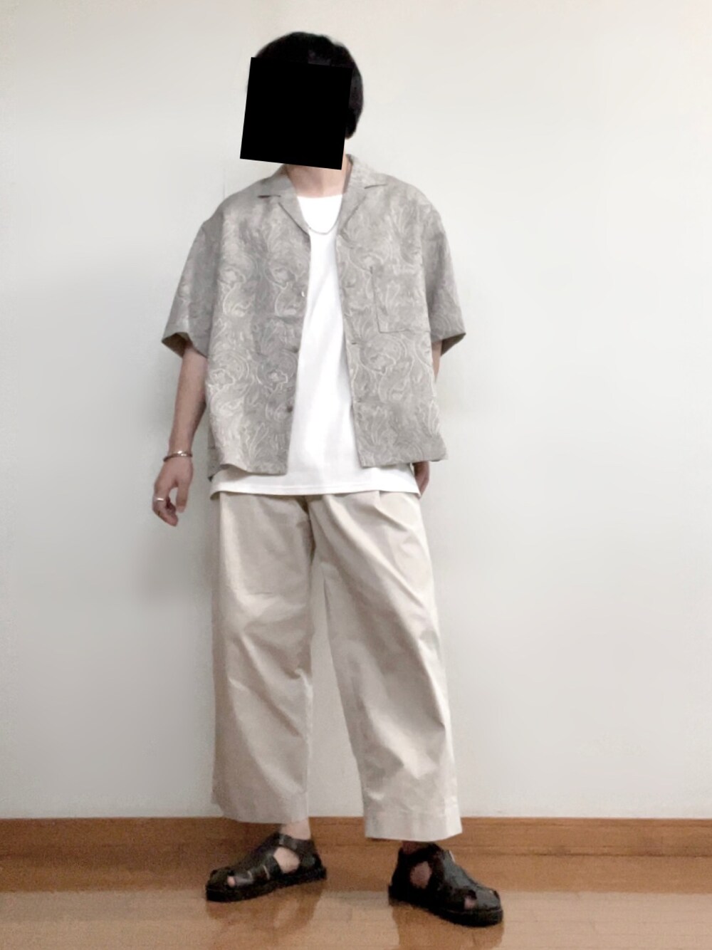 ホワイトをベースににした ラフなコーデ。 LIDNMのこの絶妙なペイズリー柄が 最高にいかしてます。