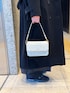 24FWのファッションショーアイテムと小物を合わせたコーディネートです! オーバーサイズでメンズライクですが、バックスリットにプリーツがあしらわれていて、フェミニンにも着ていただけます‼︎ インナーはコートとパンツにボリュームがあるので、クロップド丈のケーブルニットですっきりした印象にしました! ブラックにホワイトとグリーンのラインがポイントです! ACCはブラックコーデに映えるオフホワイトの型押しレザーでポイントにしてみました!