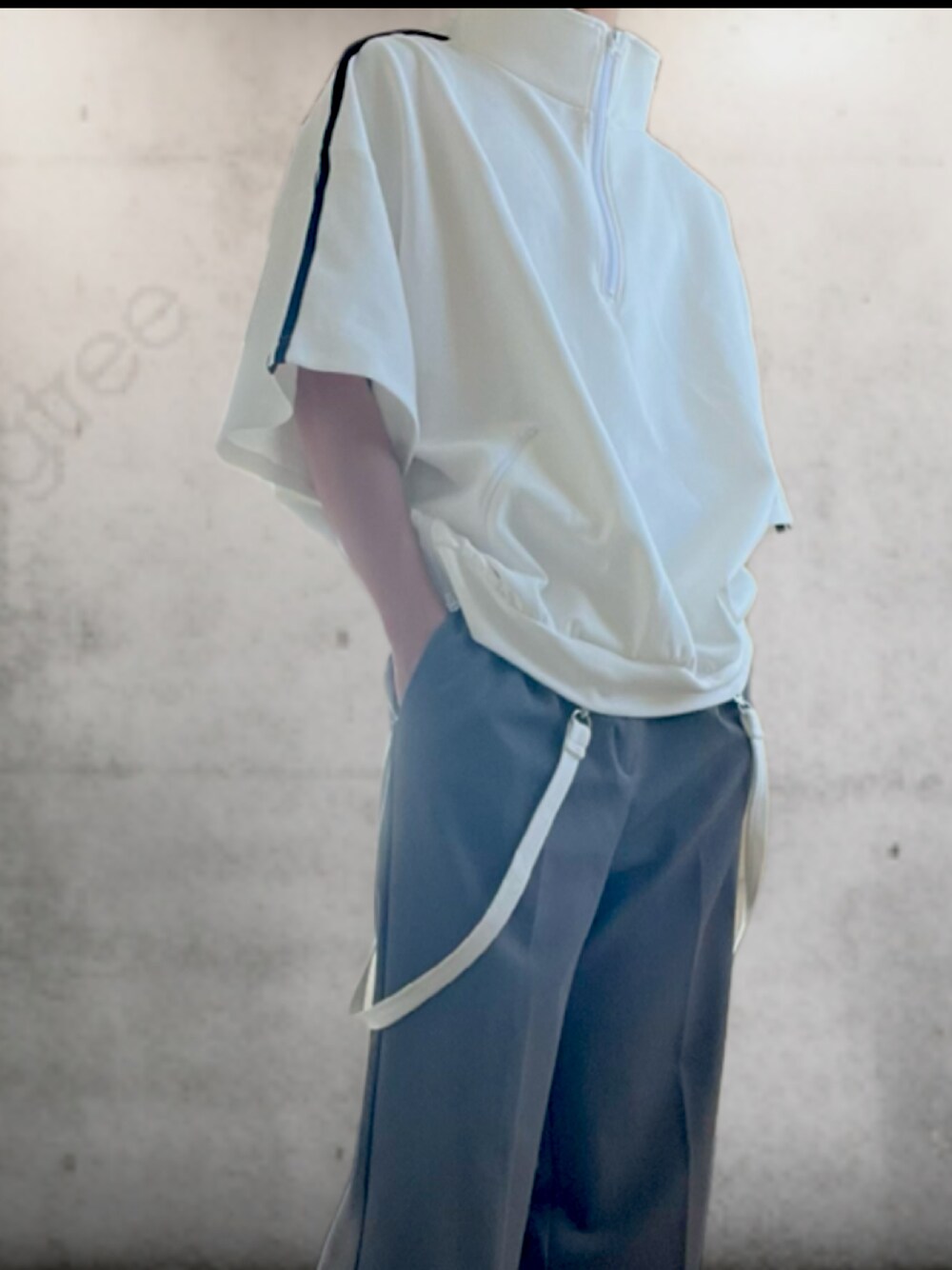 akiraのTシャツ/カットソー「ルーズシルエットコットンポンチドレープトラックハーフジップ半袖プルオーバー UVカット 吸水 接触冷感 防シワ 抗ピリング」を使ったコーディネート