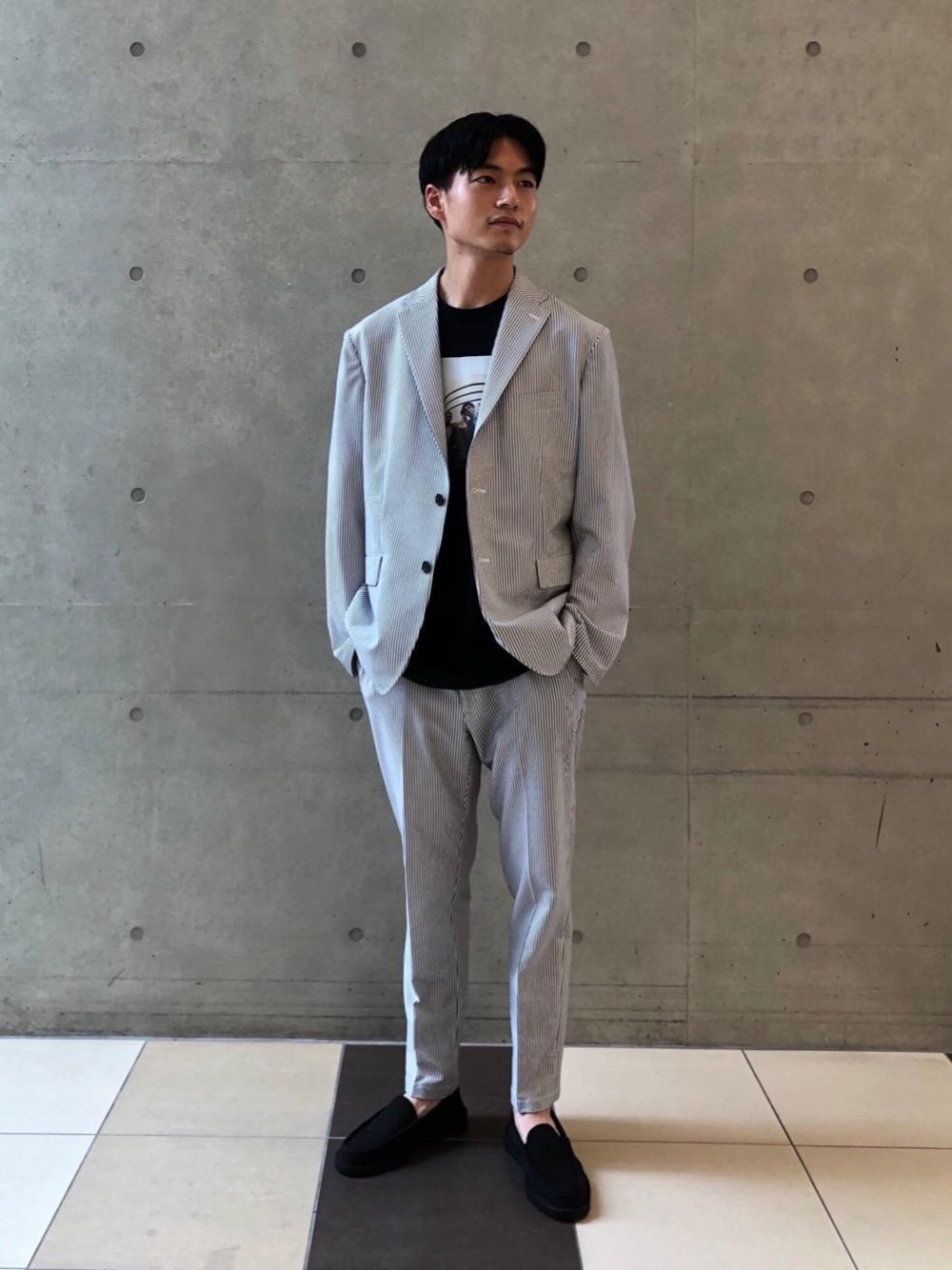 Ryo Tanakaのテーラードジャケット「BY “TORAY” シアサッカー 2B ジャケット 【セットアップ対応】」を使ったコーディネート