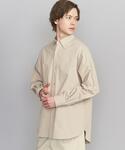 ハリのある素材のシャツにざらっとした風合いのパンツを合わせ、全体をナチュラルなカラーで纏めました。今季らしくインナーには挿し色を用い、メリハリを付けています。