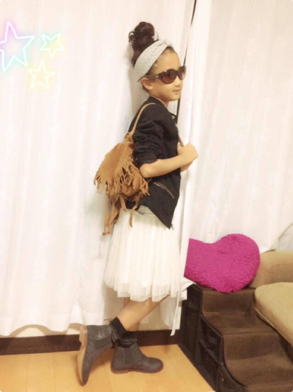 GAPのライダースジャケットとチュールスカートで甘辛mix。いつも似た感じだ💦 グレーのブーツがお気に入りです。 今日は、バレエのリハーサル、学校で算数の授業が1時間だけあります。呼び出しではないですよ😁補講?みたいです😁今、娘は好きな男の子と席がお隣で、ウキウキしながら毎日学校に行きます😍✨ 席替えの前の日は、好きな子の名前を紙に書いて枕の下に入れて寝るとお隣になる!という、おまじないを信じて、やってました〜〜😁みごと、お隣さーん ✨✨やったね、娘よ❤️