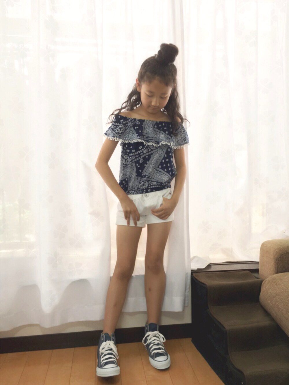 3週間前くらい、 娘が習い事に行ってる待ち時間に母ちゃん👵🏿初バースデーに乗り込みました🖖🏿 ちょいちょいちょい🙌🏻小さい可愛い服が安くて沢山〜〜😍 ギリギリ娘sizeがあった事に完全に浮かれポンチになったババア…はい、買っちゃいましたよ、そりゃ買っちゃうよ。 頭の中… 学校→体育着&Tシャツ 夏休み→南国→バケーション→プール→海→肩出し→ブルーハワイ そんな妄想しながら可愛いトップス買いました❤️ が、しかーし😱 👧🏿娘→ママ、生地が足りないよ。 👵🏿母ちゃん→我に帰る。 こういう洋服なのかな…違うのかな…たぶん、娘には小さかった。いない時に買って後悔😭sizeout間近です。 同じのを可愛い可愛いお友達が着ていたので、画像勝手に拝借させていただきました。すみません😭あーちゃんもぶへこちゃんも可愛いなぁ〜❤️姉妹コーデとか羨ましいなぁ〜😍