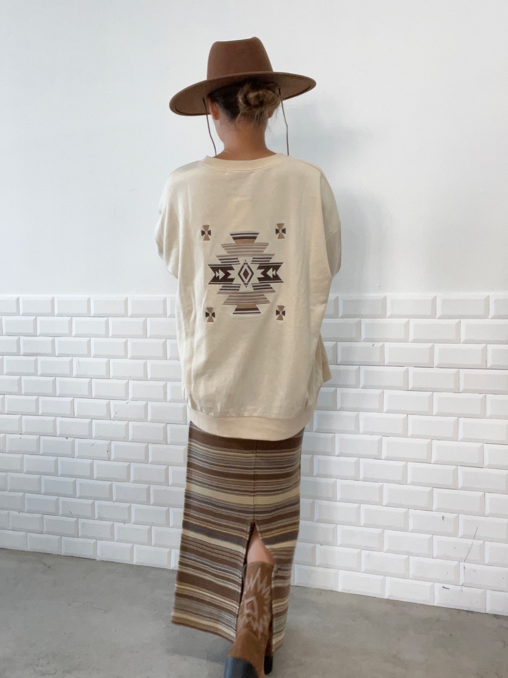 後ろオルテガ刺繍🪡がmimpiらしいスウェットトップス🤎 フロントは胸元のワンポイント刺繍でシンプルに🫶🏽 トレンド感のあるドロップショルダー×オーバーサイズシルエットは着心地も😊✨ マルチボーダー柄がレトロチックな印象のボーダースカート🌈 ストレッチのきいた伸びの良いニットの素材感と ウエストゴム仕様でストレスフリーな履き心地😌💛 バックスリット入りで動きやすく 抜け感もプラス🥰