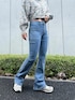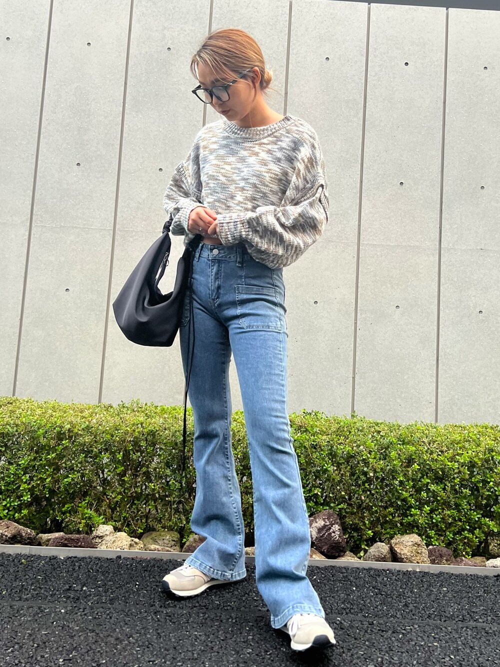 クロップド丈のトップスにベルボトムを合わせることで脚長効果に👖🩵