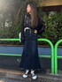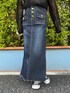 anap mimpi(ANAP Online Official)のデニムスカート「デニム タイト 裾フリンジ ロング マキシ ワンピース」を使ったコーディネート