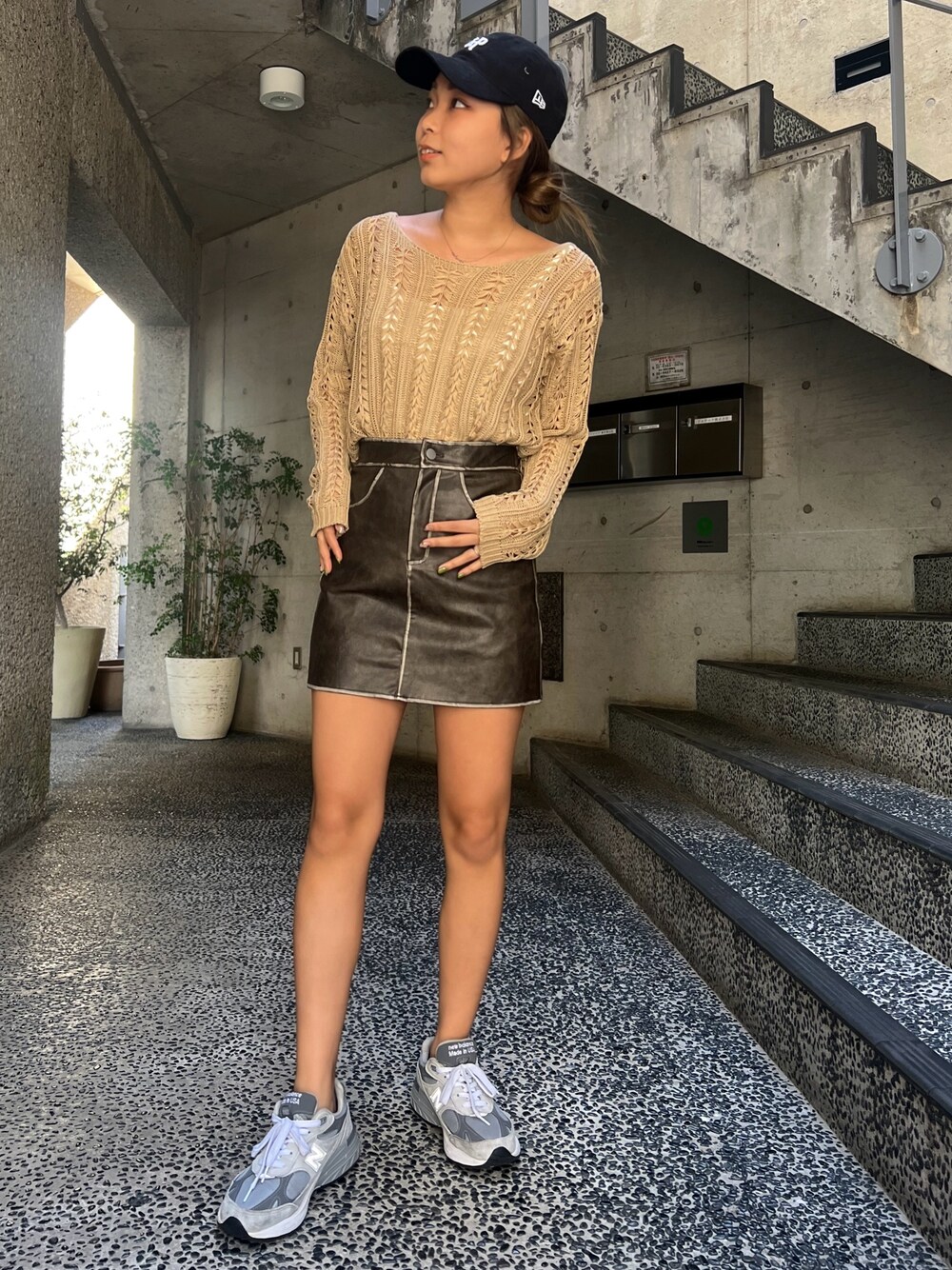 anap mimpi(ANAP Online Official)のスカート「ヴィンテージ風 フェイクレザー ミニスカート」を使ったコーディネート
